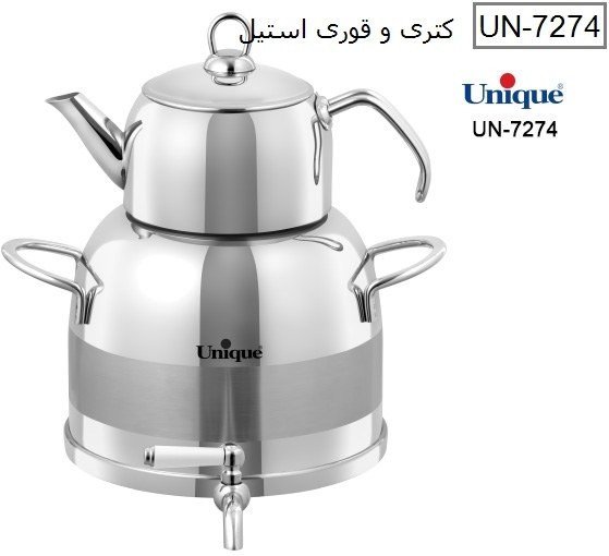کتری و قوری استیل یونیک کد 7274 دسته نقره ای