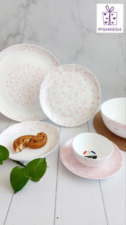 سرویس آرکوپال 26 پارچه 6 نفره گلدن اپال طرح گلریز صورتی